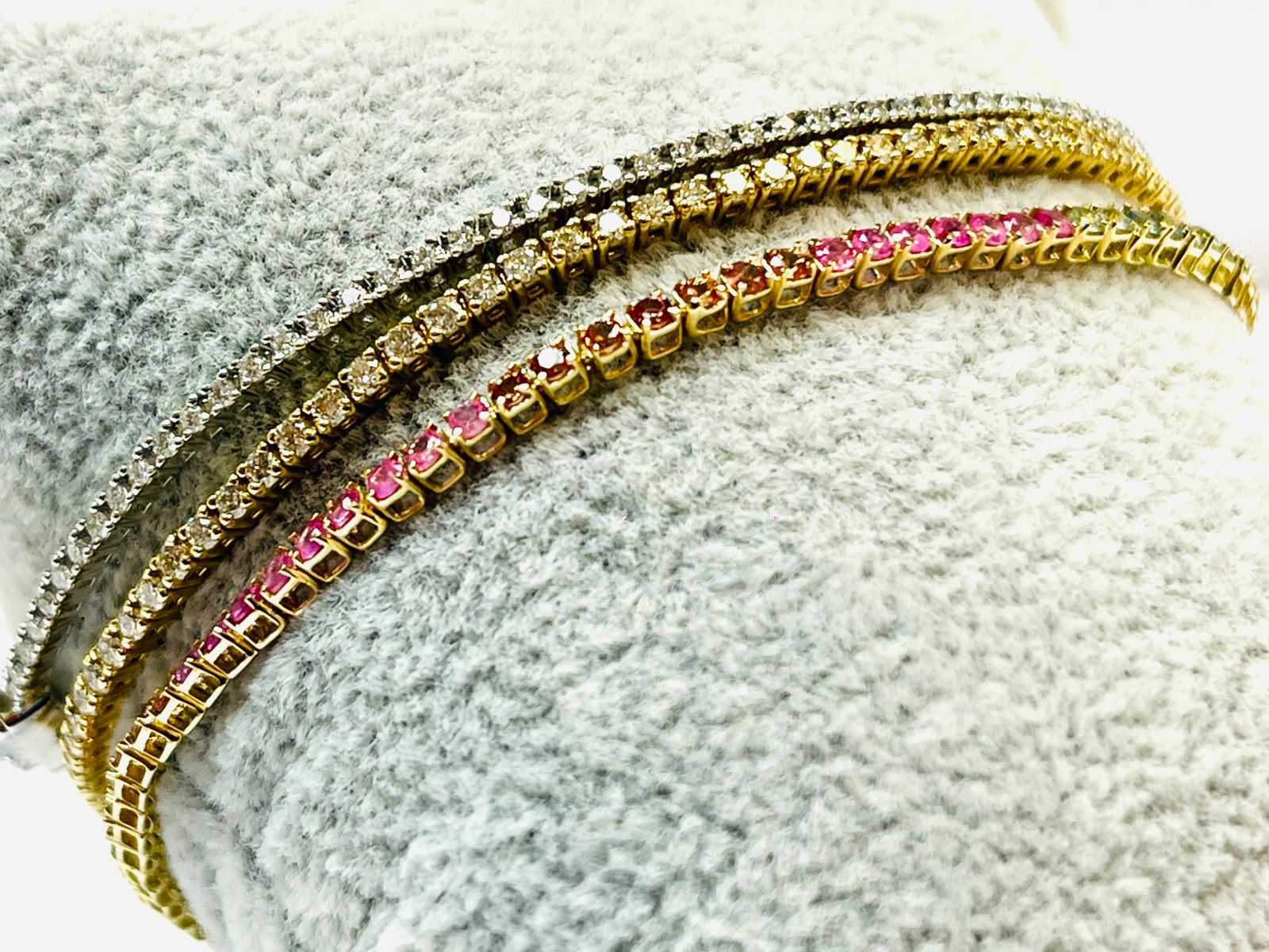 Pulsera tenis brillantes y zafiro rosa en oro de 14K MN brillantes 3.95k, $185,000 MN safiros
